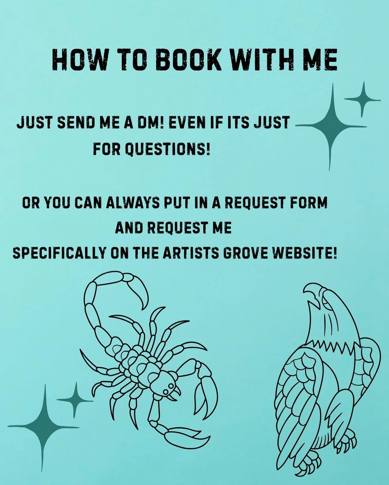 Iβve been drawing since I was in kindergarten but have been in love with tattooing since 2018 when I got my first machine, I like doing all kinds of styles but prefer American Traditional, Neo Traditional, anything colorful and blackwork! Iβm open to trying new styles!