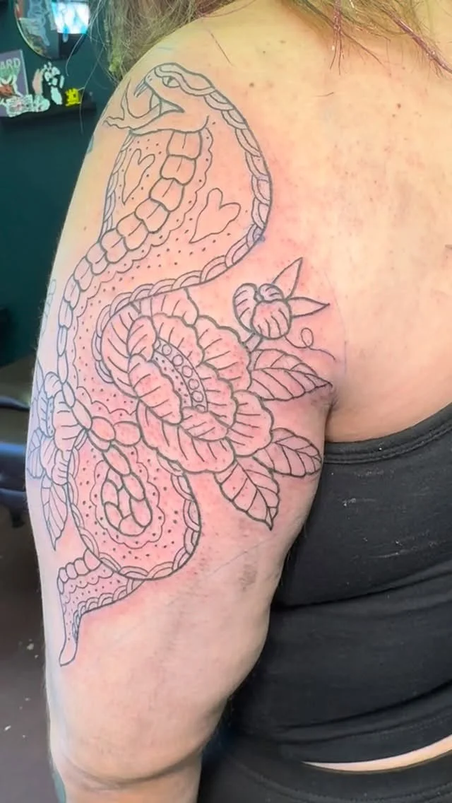 I’ve been drawing since I was in kindergarten but have been in love with tattooing since 2018 when I got my first machine, I like doing all kinds of styles but prefer American Traditional, Neo Traditional, anything colorful and blackwork! I’m open to trying new styles!